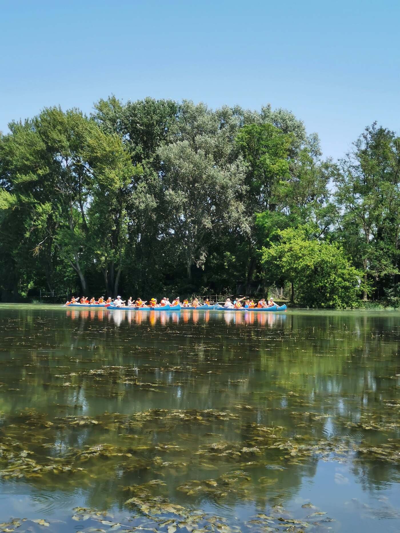 V ďalšej časti sa vnoríme do krásneho mŕtveho ramena, kde je voda priezračnejšia, vegetácia bohatšia a rýb viac. Deti so zvedavosťou zbierajú riasy a skúmajú vodné rastliny, zatiaľ čo okolo nás poletujú vážky – niektoré sa usadia priamo na ruke či čiapke výletníkov, akoby nás vítali. Na poslednom úseku prichádzame k vodopádu na Šuľanskom jazere, kde sa výlet končí. Tu vykotvíme a šoférov odvezieme späť do Vojky po autá – zvyčajne sú späť do 15 minút. Zvyšní hostia si zatiaľ môžu oddýchnuť na pláži pri jazere, kde sa nachádza aj útulný bufet.